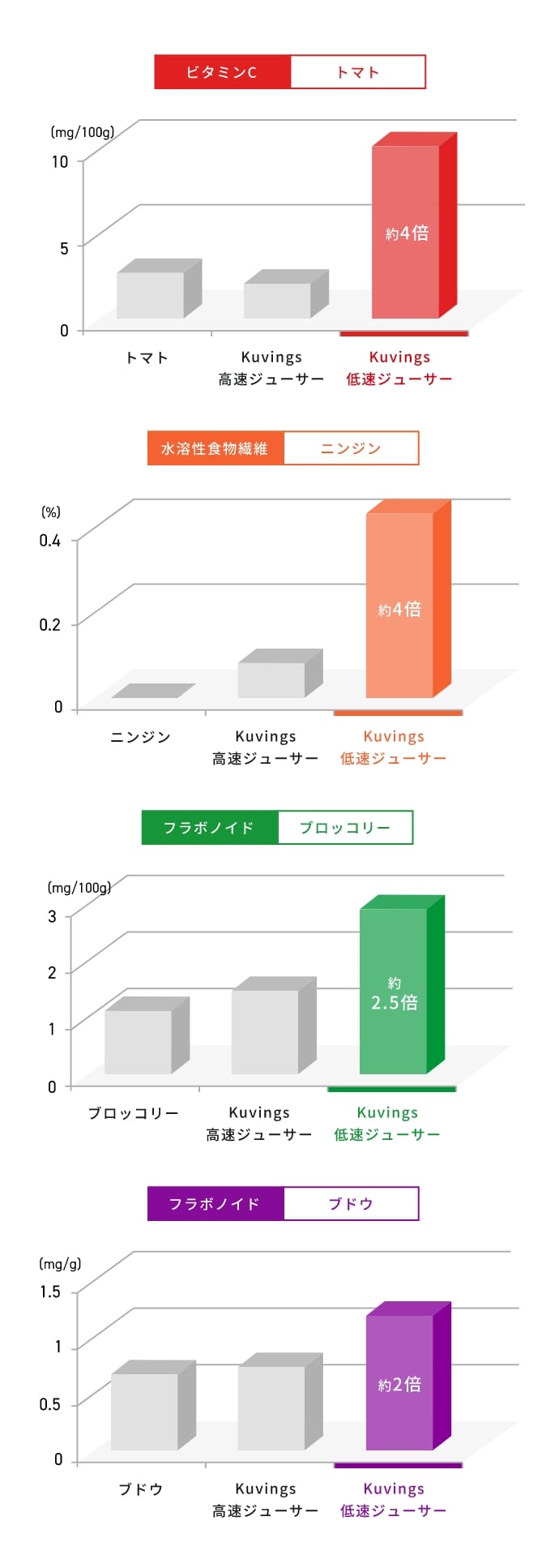 日々の健康や美容のために、野菜や果物を積極的に食べたい。でも実は、そのまま食べるよりもクビンスのスロージューサーでジュースにしたほうが、栄養の吸収率がアップするのです。